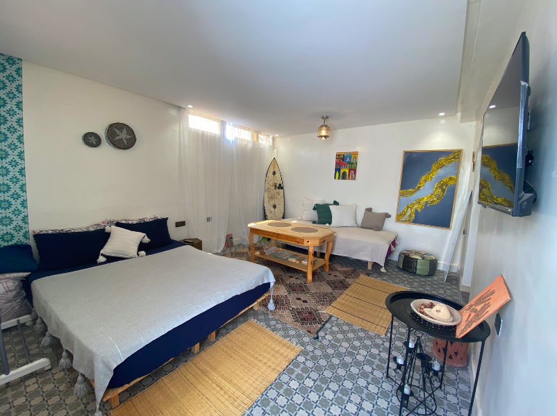 Studio à louer au dernier étage d’une petite résidence sécurisée et calme, avec une terrasse privative. Il est composé d’une chambre ouverte sur le séjour et la cuisine, ainsi qu’une douche avec toilette.
