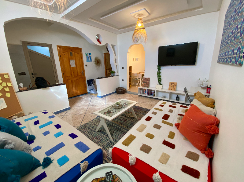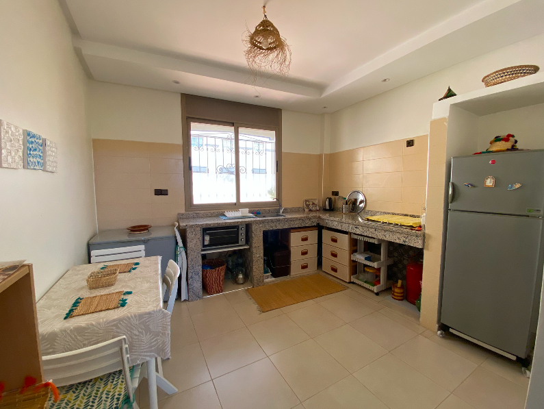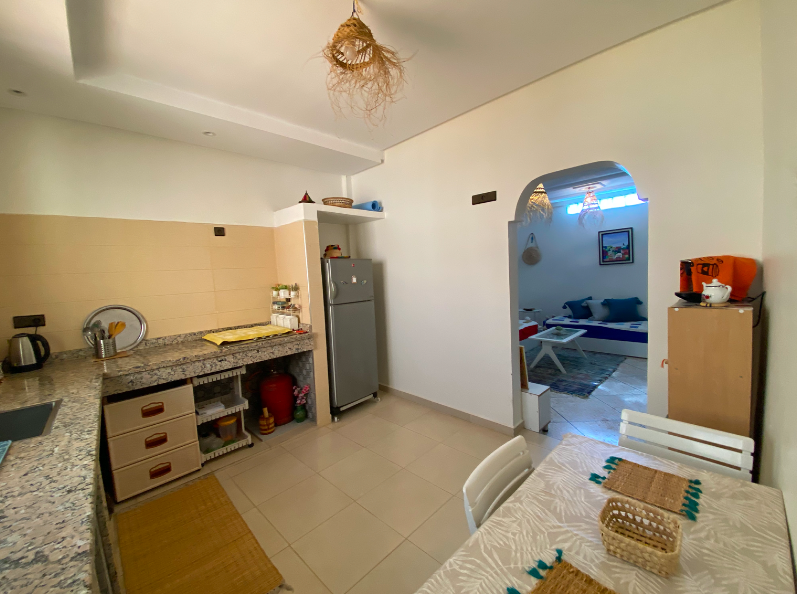 Studio meublé à louer dans la région de Taghazout – Aourir, décoré dans un style marocain berbère. Superficie de 60 m² comprenant une chambre, un salon/séjour, une salle de bain et une cuisine équipée. Situé au 2ᵉ étage d’une petite résidence sécurisée et calme, idéale pour profiter d’un cadre agréable et paisible.